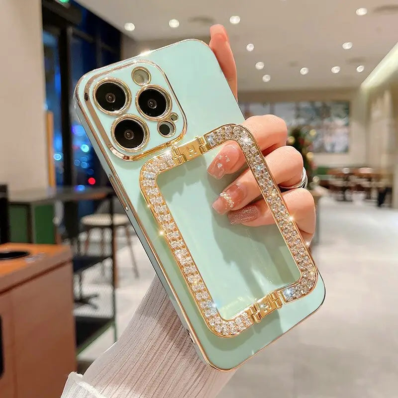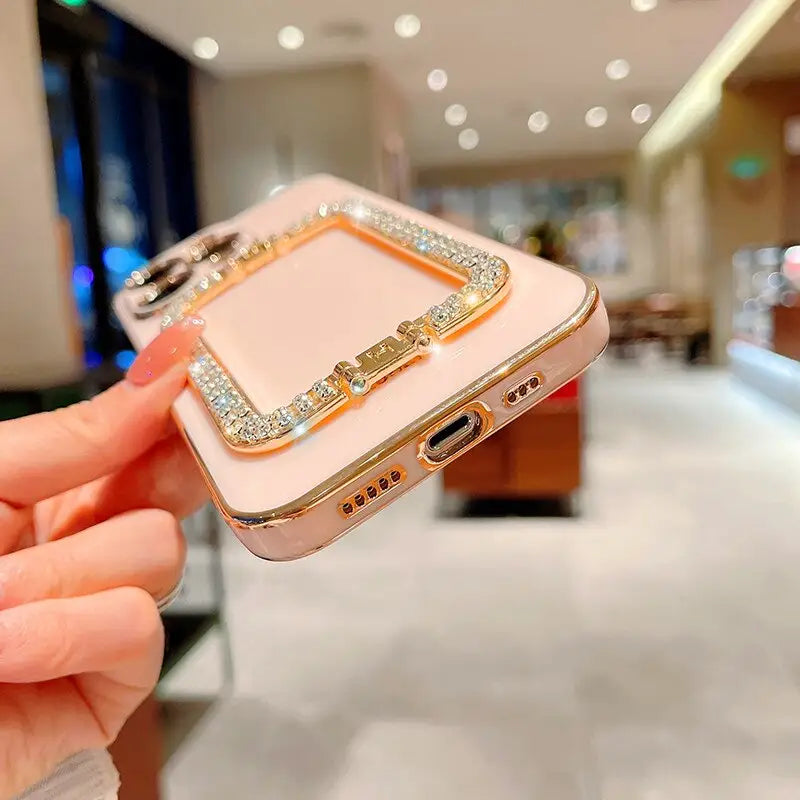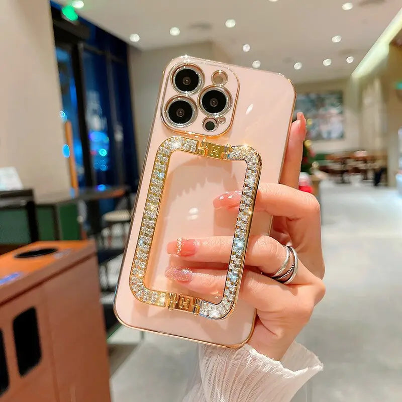 Luxury Plating Phone Case with Rhinestone Diamond Folding Grip Holder For Xiaomi Redmi Note 12 11 10