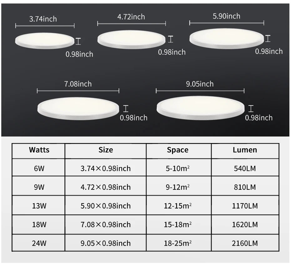 Introducing our Ultra Thin LED Ceiling Light, a sleek and modern lighting solution for any space. Available in various wattages including 6W, 9W, 13W, 18W, and 24W, this versatile ceiling lamp offers ample illumination while consuming minimal energy. Designed to operate within a wide voltage range of 85-265V, it's suitable for use in different regions. With its ultra-thin profile, this ceiling light seamlessly blends into your decor, providing a clean and minimalist aesthetic. Whether you need to brighten up a small room or illuminate a larger area, our Ultra Thin LED Ceiling Light is the perfect choice for your lighting needs.