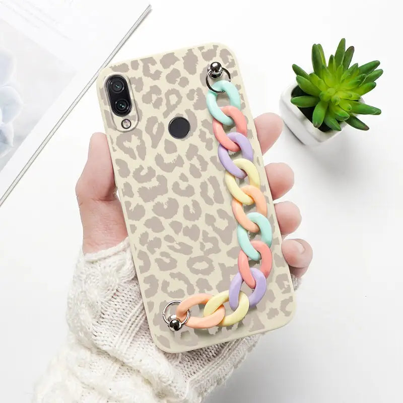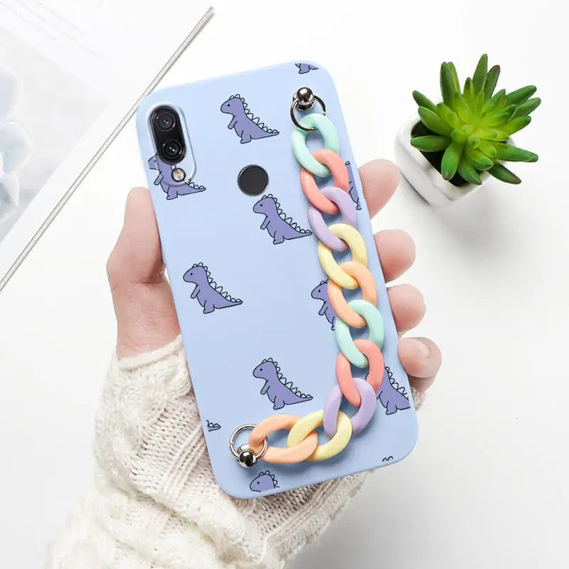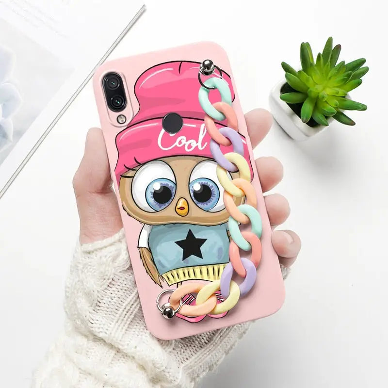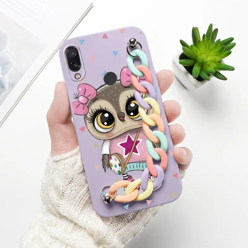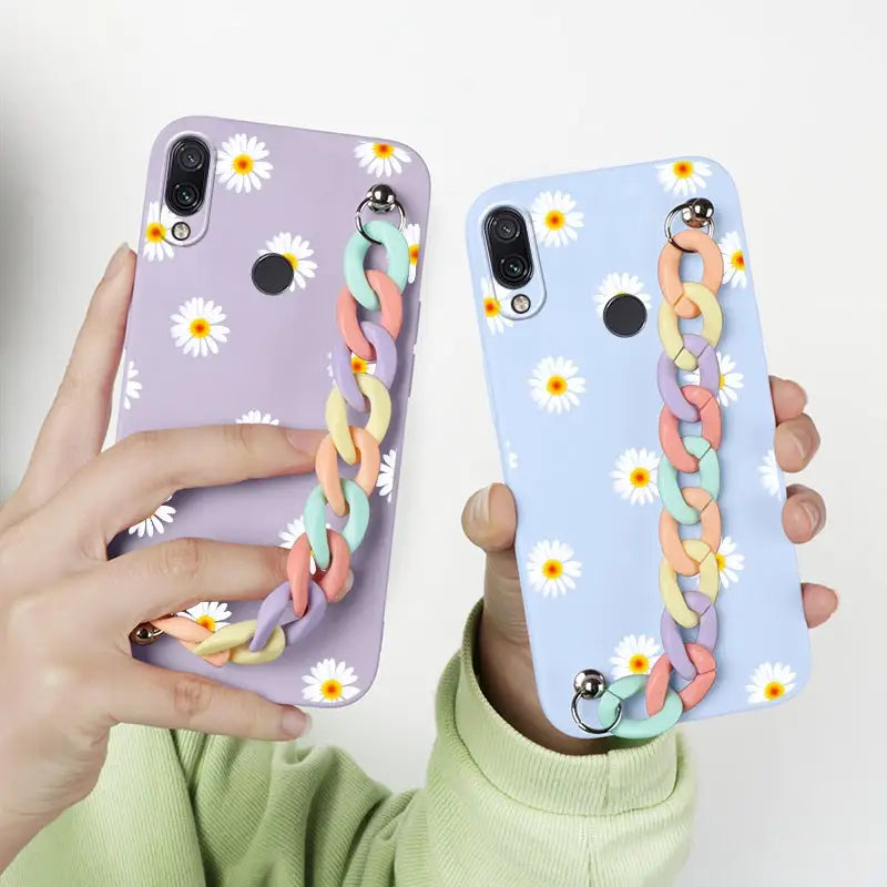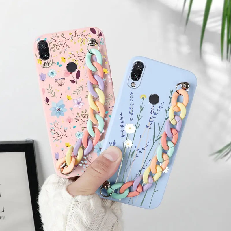 Étui de téléphone de bande dessinée avec Bracelet chaîne de poignet pour Xiaomi Redmi Note 7 Pro 7A Note7 Pro téléphone à fleurs