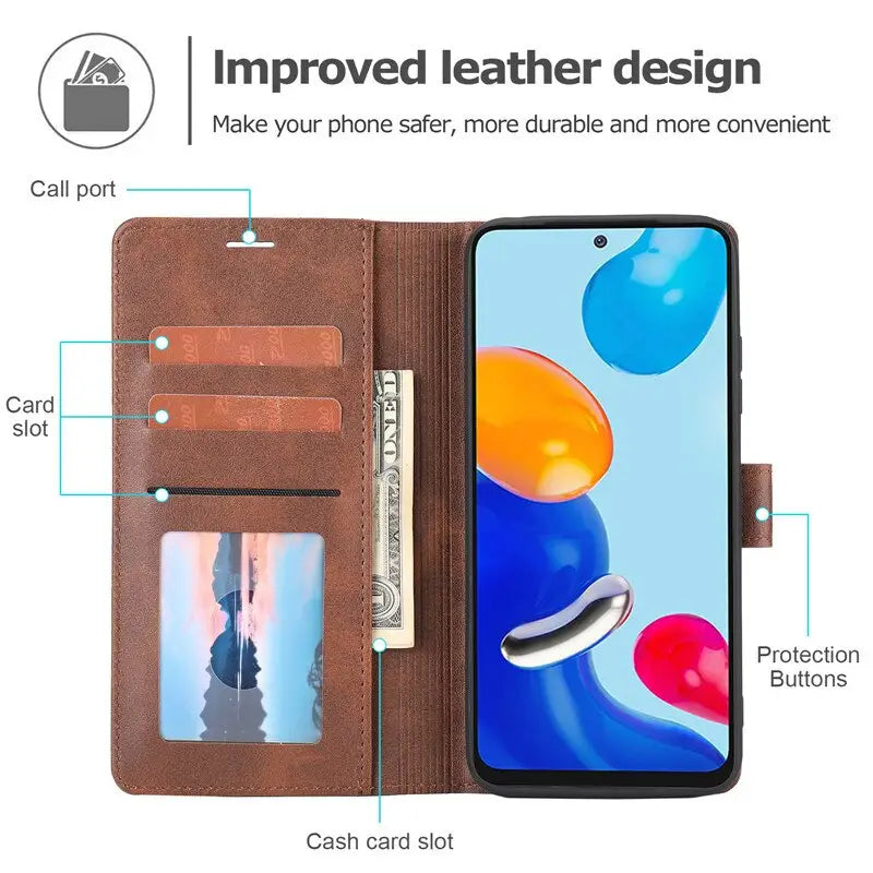 Présentation de notre étui de téléphone en cuir à rabat de style portefeuille, conçu spécifiquement pour les modèles Xiaomi Redmi 9A, 10C, 10A, K40, K50 Pro, Note 9S, 10S et 11S. Cet étui haut de gamme offre la combinaison parfaite de style et de protection pour votre précieux appareil Xiaomi Redmi. L'extérieur en cuir PU durable assure une longue durée de vie, tandis que la doublure intérieure douce enveloppe doucement votre téléphone, évitant ainsi tout dommage potentiel. non seulement cette coque offre une protection exceptionnelle, mais elle ajoute également une touche d'élégance à votre téléphone Xiaomi Redmi. Le design de style portefeuille comprend plusieurs emplacements pour cartes et une poche pour espèces pratique, vous permettant de stocker vos cartes essentielles, vos pièces d'identité et même de l'argent liquide dans un seul endroit compact. Dites adieu aux portefeuilles encombrants et profitez de la commodité d'avoir tous vos essentiels bien rangés avec votre téléphone.undéfiniundéfiniNous comprenons l'importance de maintenir un accès facile à tous les ports, boutons et fonctionnalités de votre téléphone Xiaomi Redmi. Avec des découpes précises, notre coque de téléphone permet un accès transparent à votre appareil photo, vos haut-parleurs, vos ports de charge et d'autres fonctions essentielles sans retirer la coque. Profitez d'une utilisation sans tracas de votre appareil grâce à notre étui à rabat soigneusement conçu. Nous sommes fiers de fournir des produits de qualité supérieure qui dépassent les attentes des clients. Ne faites aucun compromis sur la sécurité et le style de votre téléphone Xiaomi Redmi - achetez-le maintenant et offrez-lui la protection qu'il mérite avec notre étui à rabat en cuir de style portefeuille.
