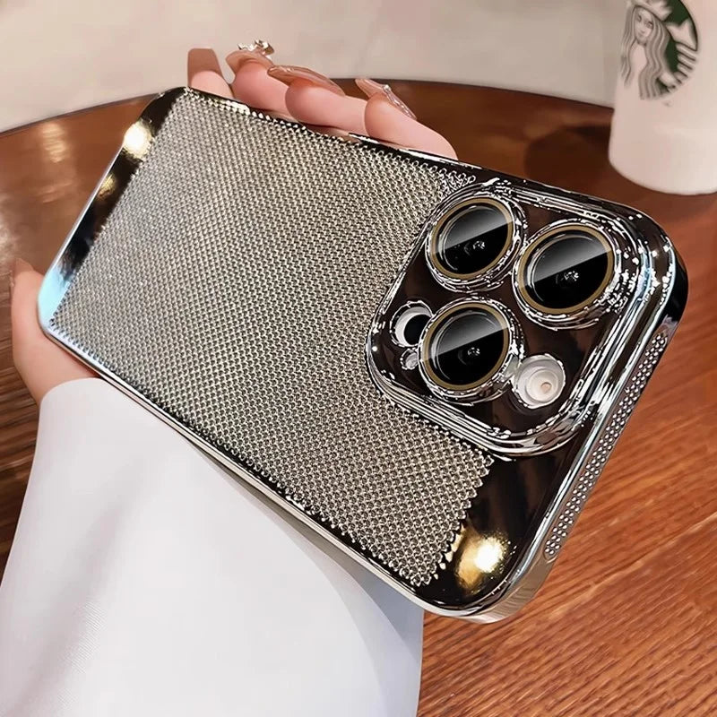 Keep your iPhone cool, protected, and looking premium with this Luxury Plating Heat Dissipation Case. Designed with a vented back for airflow, elegant metallic plating, and raised lens protection, it combines high-performance function with standout style.