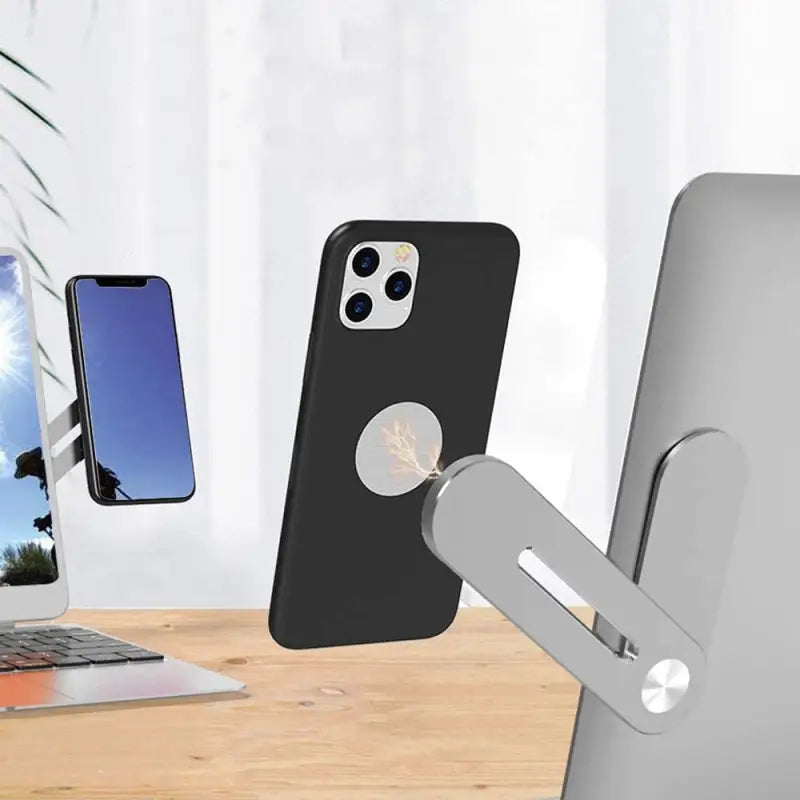 Grâce à sa conception réparable, ce support peut être facilement fixé sur le côté de votre ordinateur portable ou tablette, offrant ainsi un support stable et fiable à votre téléphone ou tablette. La fonction d'adsorption automatique garantit que votre appareil reste bien en place, tandis que le support métallique offre un soutien et une stabilité supplémentaires.