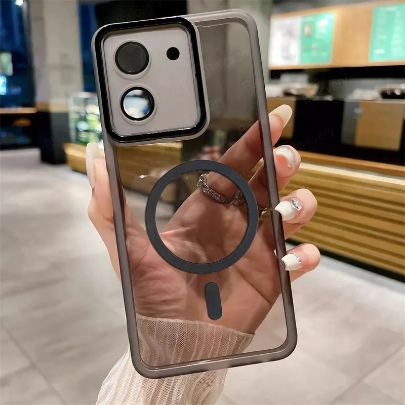 Protect your VIVO Y27S 4G and Y36 5G with this Luxury Matte MagSafe Opaque Case. Designed for style and durability, this case features a sleek matte finish and an opaque design that adds a modern touch to your device. The shockproof construction safeguards your phone from drops and impacts, while the camera lens protection ensures your lenses stay scratch-free. MagSafe compatibility allows for effortless wireless charging, making this case a perfect blend of elegance, functionality, and robust protection for your VIVO device.