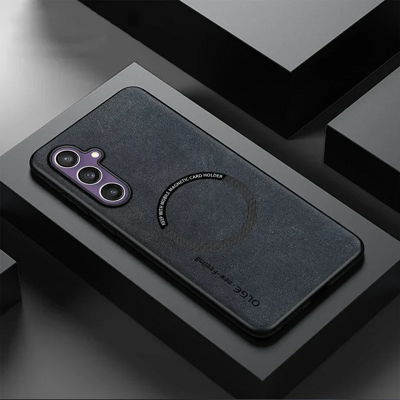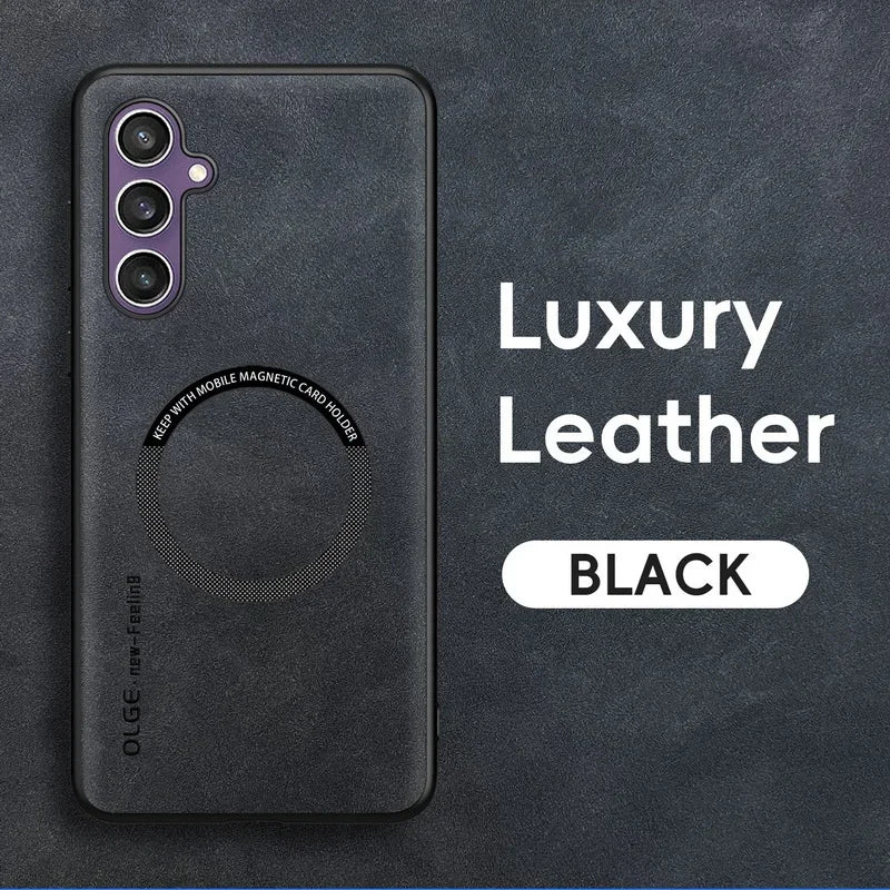 Elevate your Samsung Galaxy with our Luxury MagSafe Leather Style Wireless Charging Case, designed for models A15, A25, A35, A55, A05, A14, A24, A34, A54, A13, A23, A33, A53, A32, and A52. This premium case combines the elegance of a leather-style finish with advanced MagSafe compatibility, offering seamless wireless charging and robust shockproof protection.