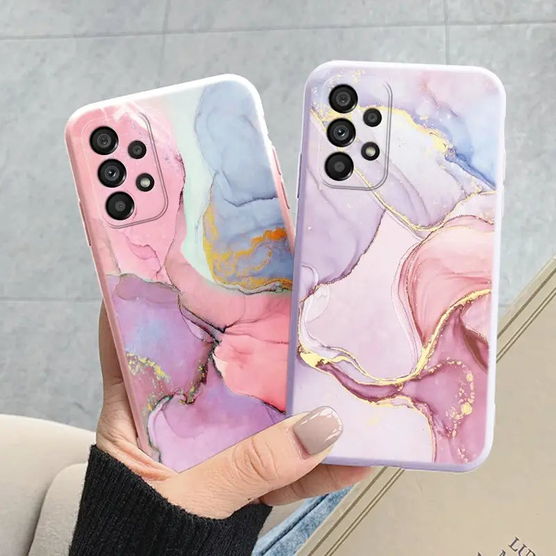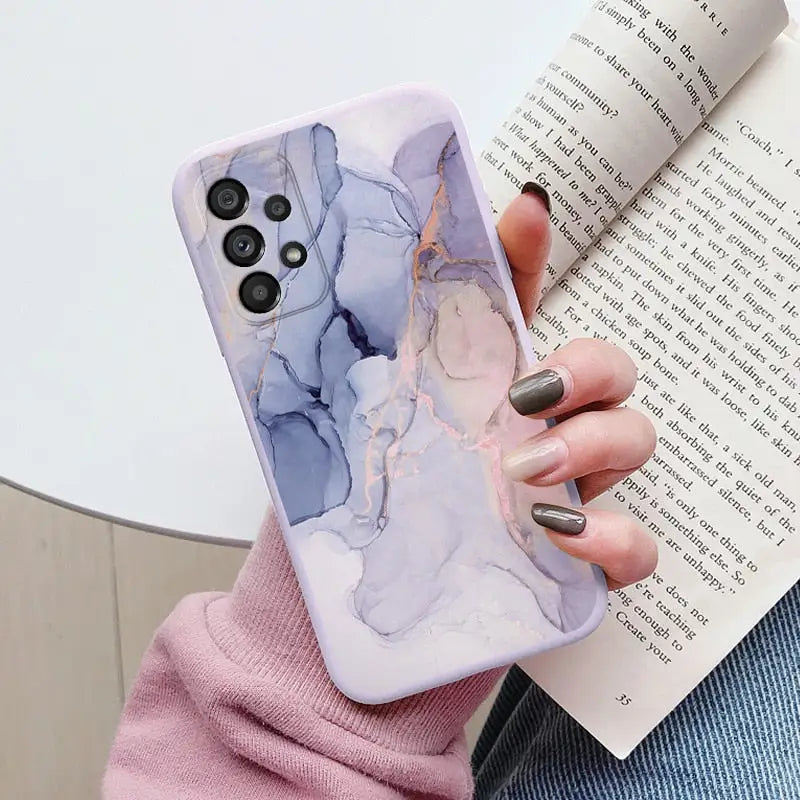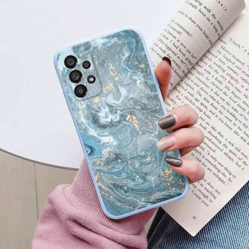 Coque de protection en Silicone Funda, étui texturé en pierre de marbre pour Samsung A53 Capa