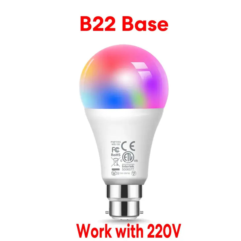 Ampoule intelligente Meross E26 E27 B22 - Contrôle variable RGBWW via les applications Apple Google Alexa Smart Things