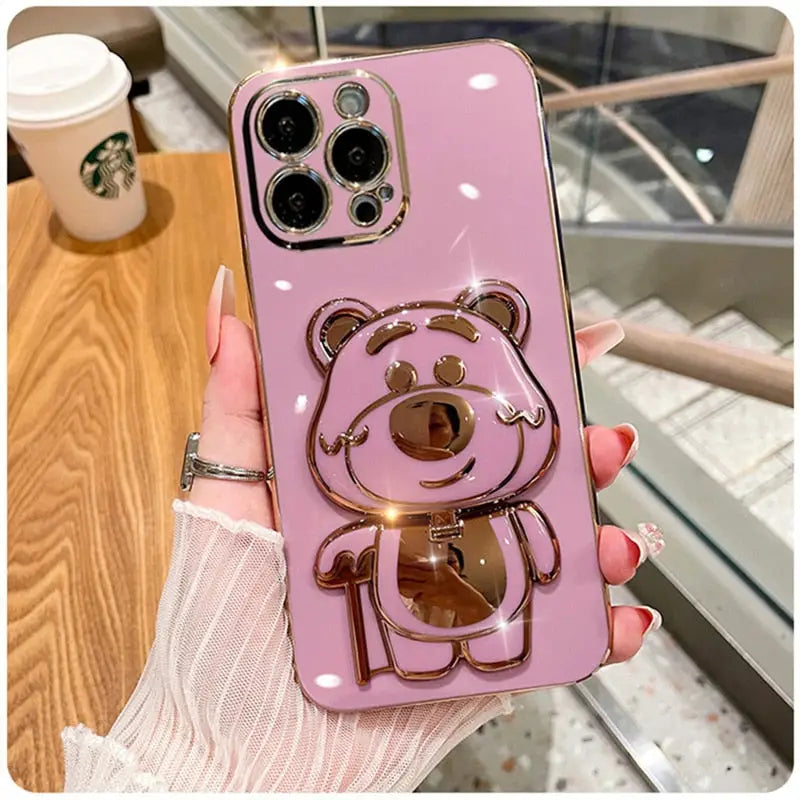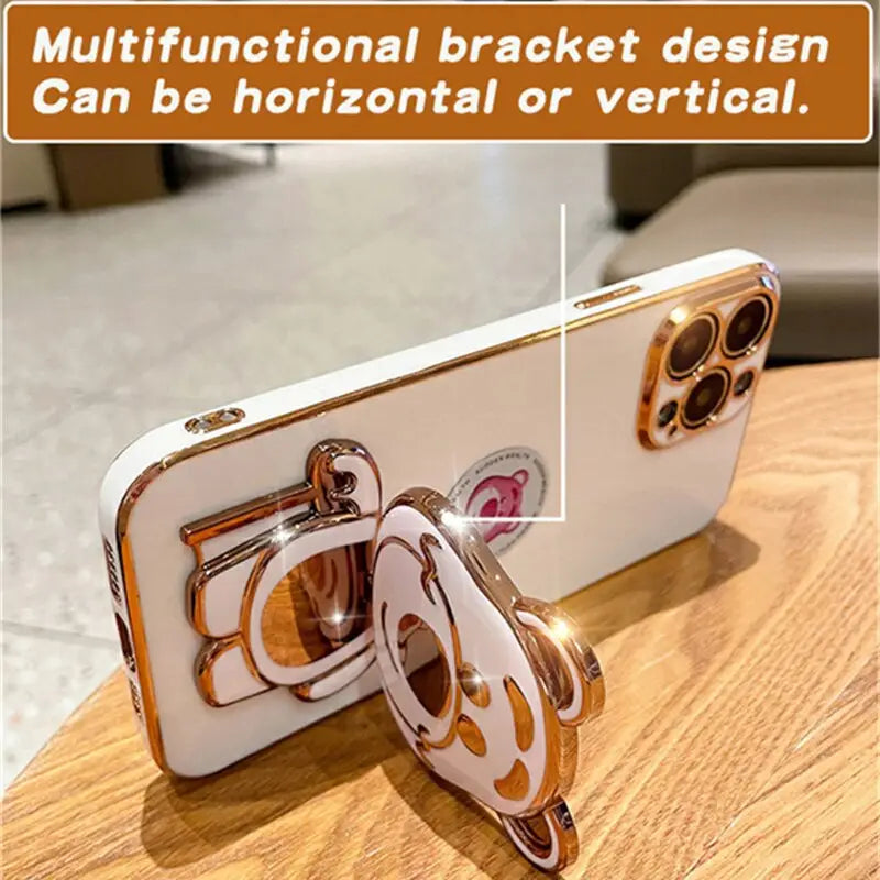 Coque de téléphone plaquée de luxe avec support d'ours mignon, pour Xiaomi Mi 11 10 9 8 ACSTX Ultra Pro