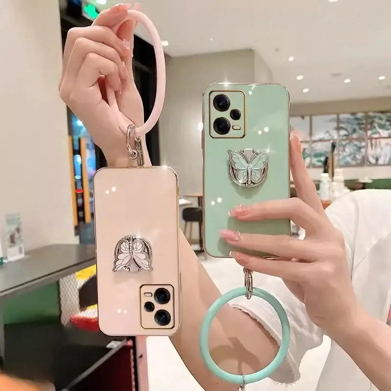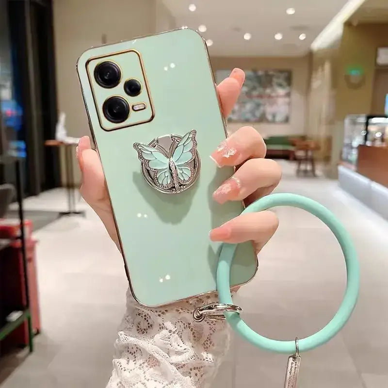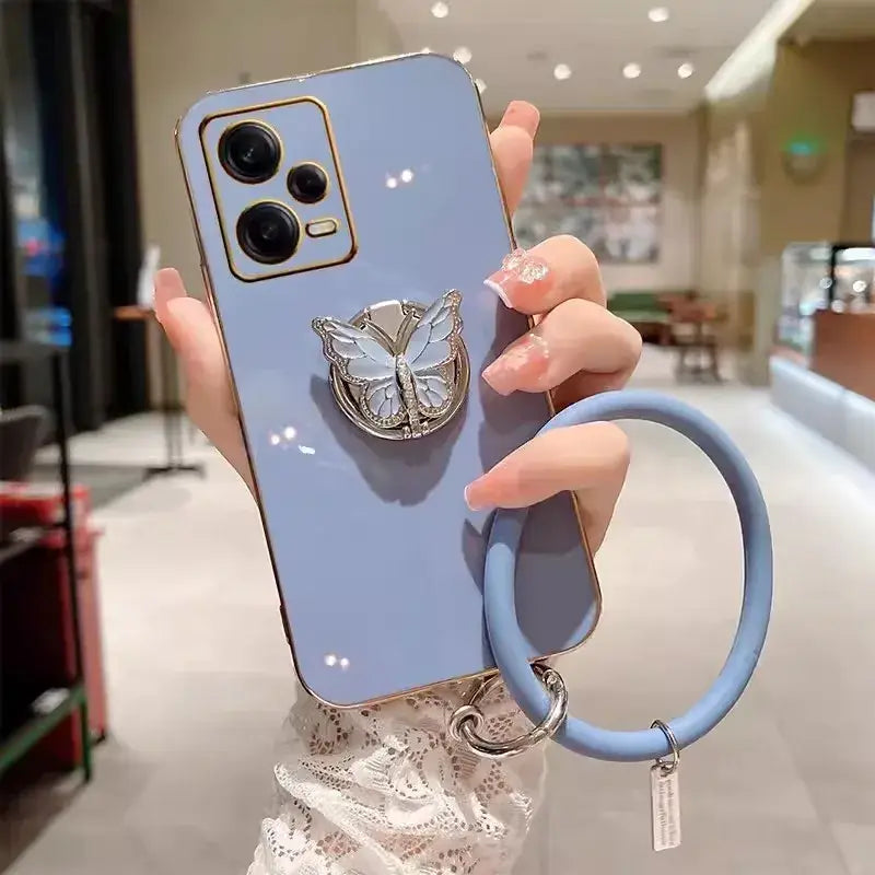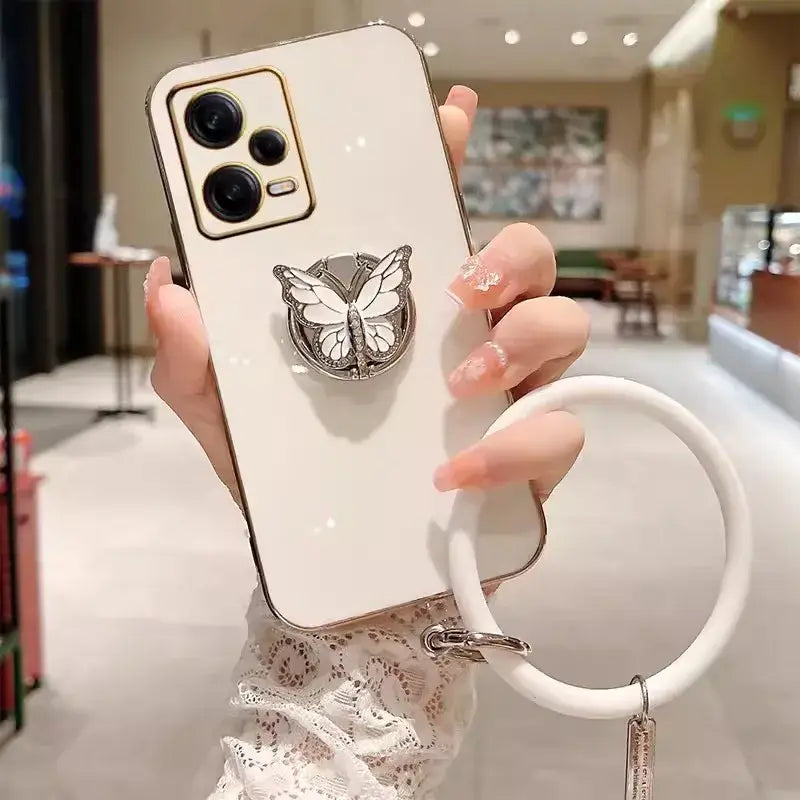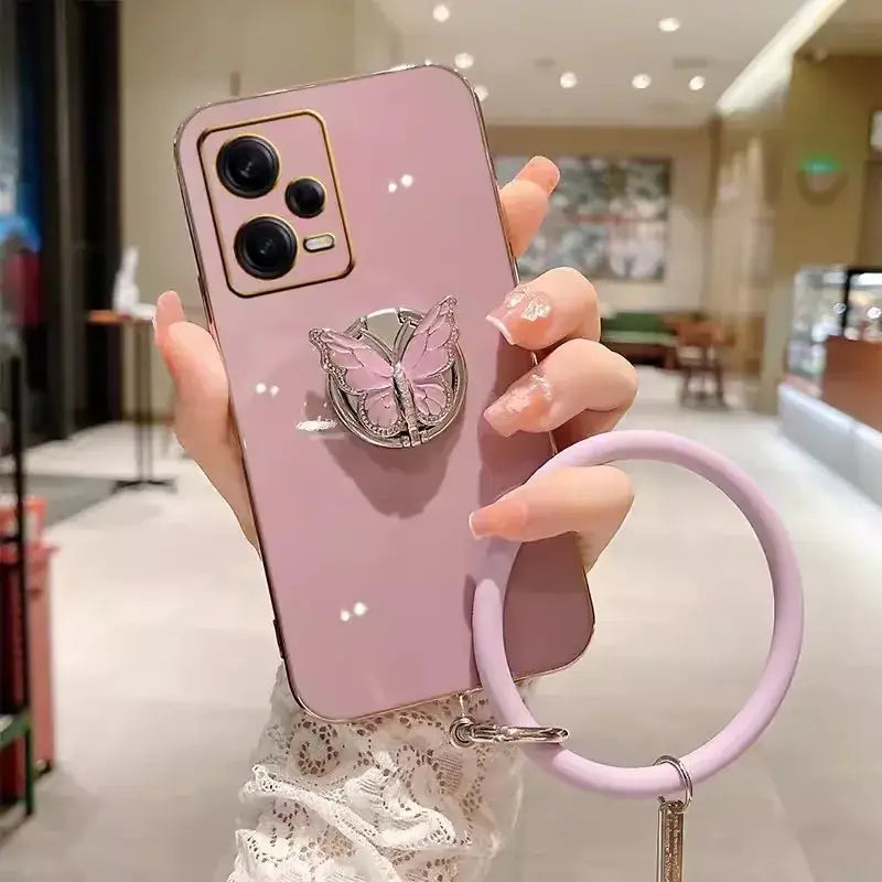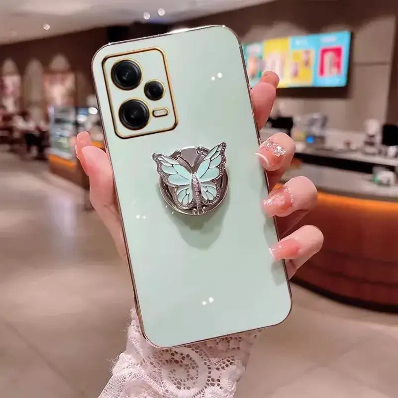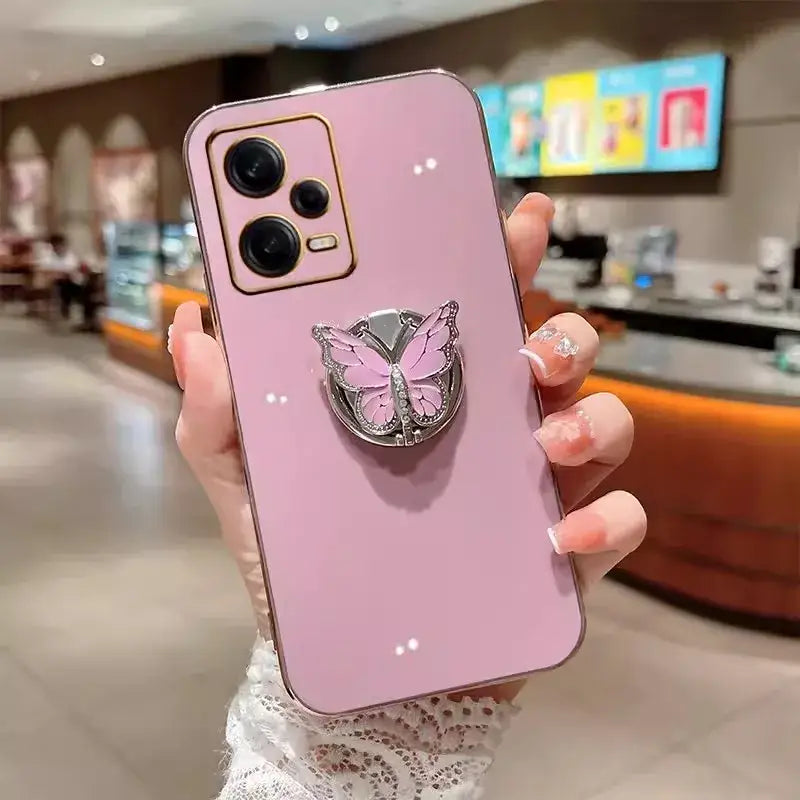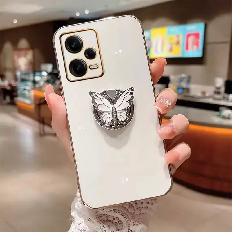 Coque de téléphone plaquée de luxe avec support d'anneau papillon 3D, pour Xiaomi Poco X5 X4 M4 X3 Pro, support NFC 5G