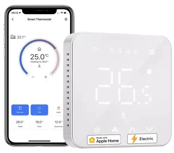 Thermostat intelligent Wi-Fi Meross HomeKit pour système de chauffage électrique par le sol, travail à écran tactile