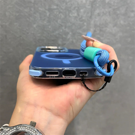 Luxury MagSafe Glitter Lens Protect Case with Crossbody Strap For iPhone 15