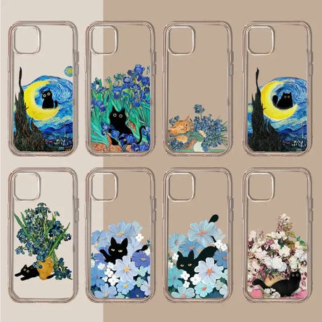 Oil Painting Inspired Transparent Phone Case For iPhone 15 14 13 12 11 Pro Max Plus Mini