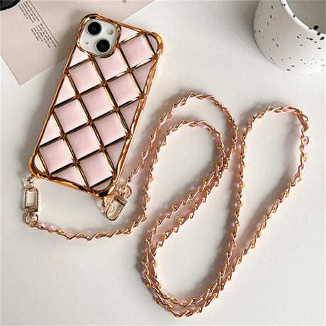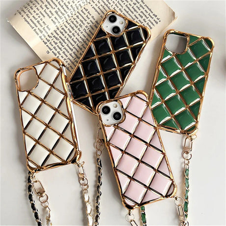Luxury Diamond Lattice Plating Phone Case for iPhone 15 14 11 12 13 Pro Max Plus
