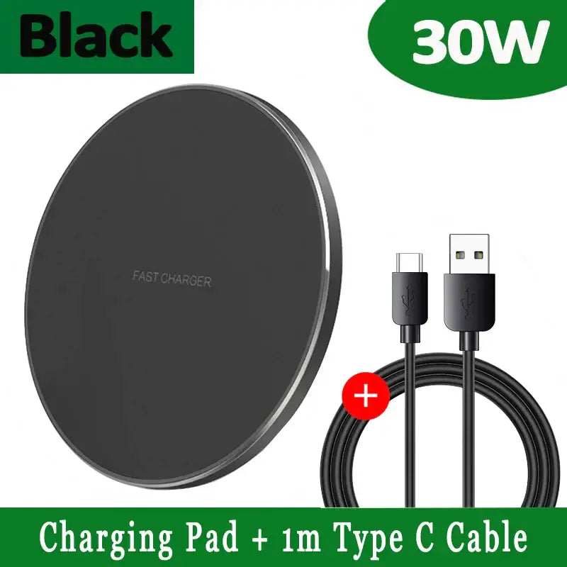 Chargeur sans fil 30W USB C, tapis de Charge rapide QC 3.0 pour iPhone 15 14 13 12 11 XS XR X