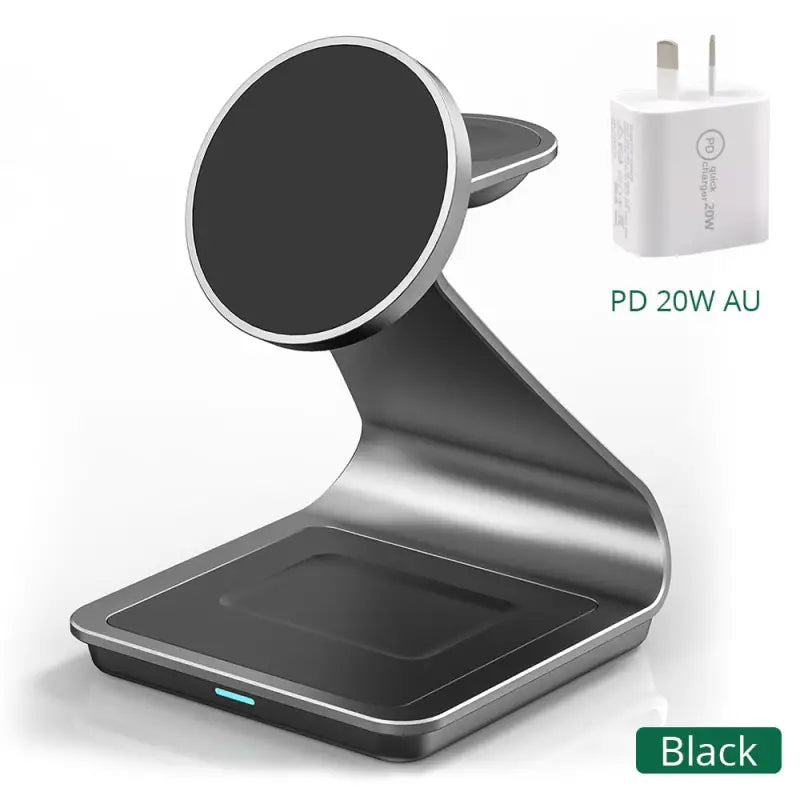 Que vous soyez à la maison, au bureau ou en déplacement, le chargeur sans fil magnétique 3 en 1 Bonola est la solution de chargement parfaite pour votre iPhone 13/14 Pro Max/12, Apple Watch et AirPods Pro. Profitez d'une charge rapide et efficace, d'une connexion magnétique sécurisée et de la commodité de charger les trois appareils simultanément. Améliorez votre expérience de recharge avec cette station de recharge sans fil élégante et fiable.