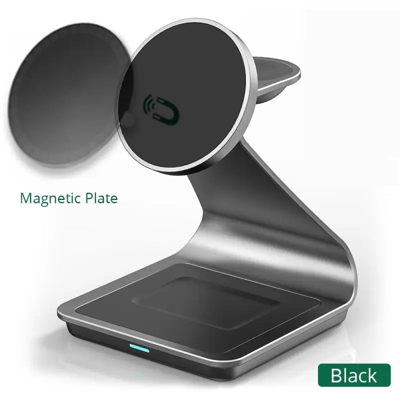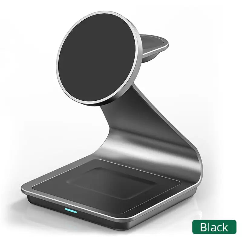 Design élégant et compact : le chargeur sans fil magnétique 3 en 1 Bonola est conçu avec un facteur de forme élégant et compact, ce qui en fait un ajout élégant à votre bureau, table de nuit ou toute autre surface. Son design minimaliste s'intègre parfaitement à n'importe quel décor.