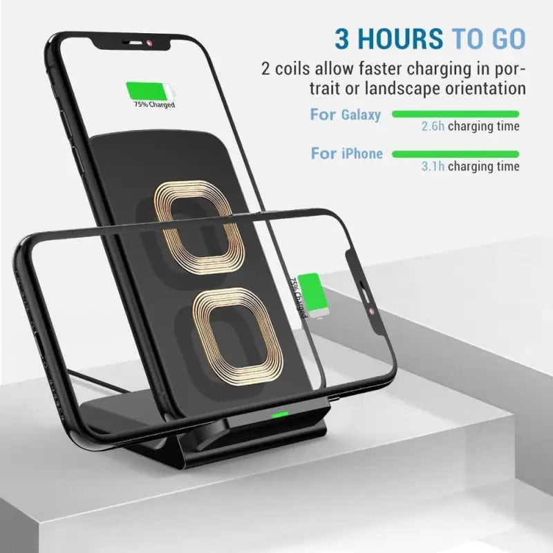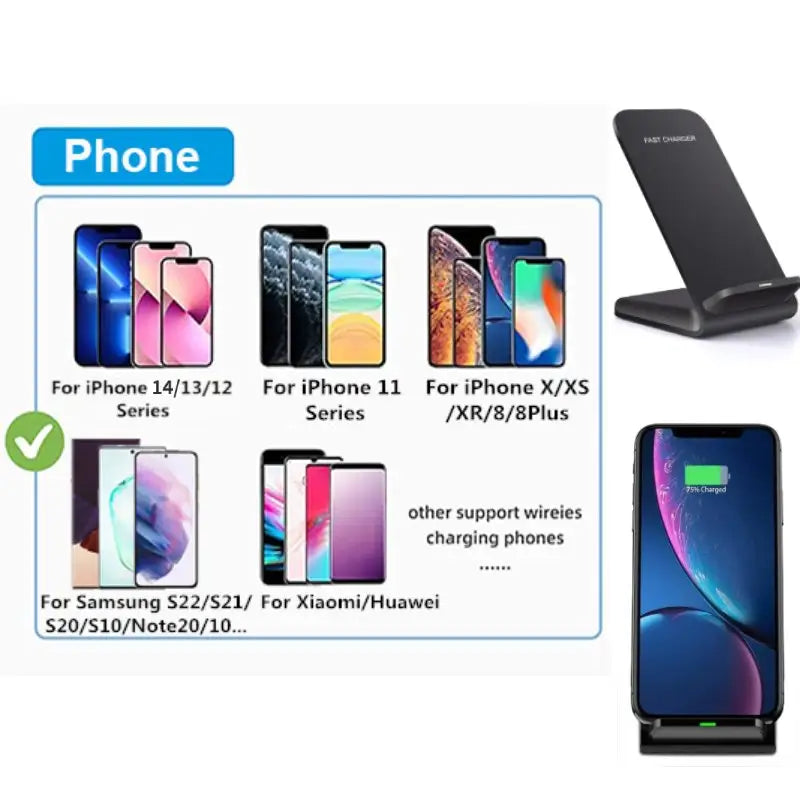 Ce support de chargeur sans fil est compatible avec les appareils iPhone et Samsung, offrant une large compatibilité. La technologie sans fil Qi intégrée garantit une expérience de chargement transparente, vous permettant de simplement placer votre téléphone sur le support et de le laisser faire le reste.