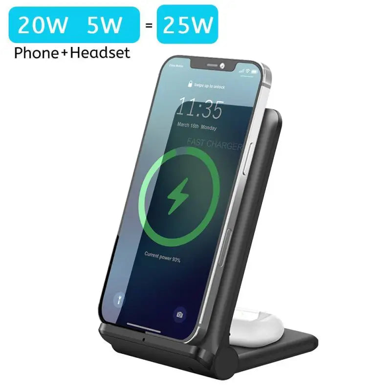 Présentation de notre support de chargeur sans fil 25 W, la solution de chargement ultime pour votre iPhone 14, 13, 12, 11, XS, XR, X, 8, Apple Watch 8, SE, 7, 6, 5, 4 et AirPods Pro 3. Ce La station de chargement rapide allie polyvalence, efficacité et commodité pour alimenter tous vos appareils essentiels.