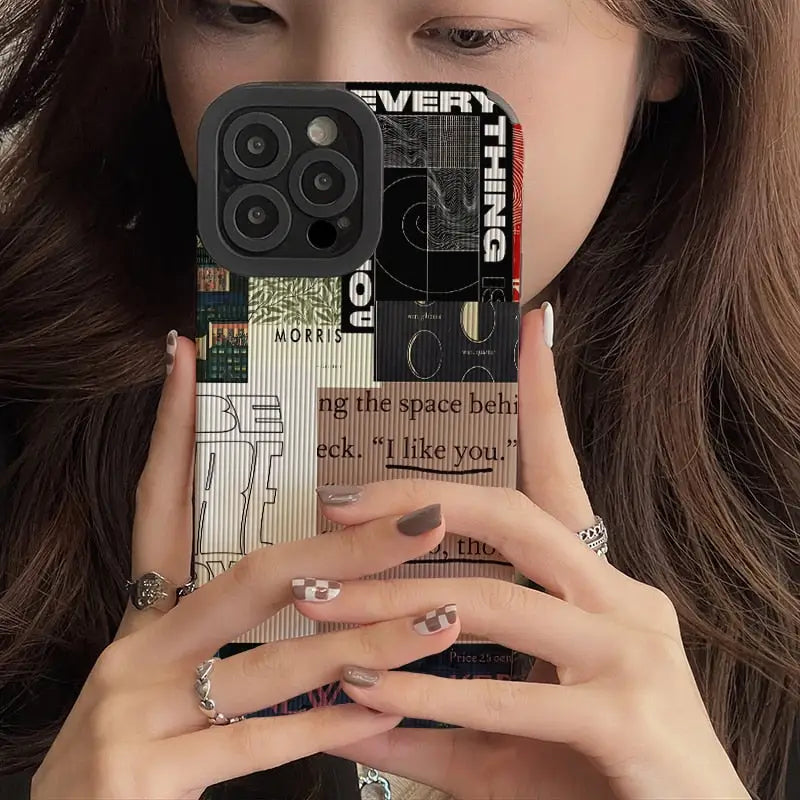 Coque de téléphone en cuir souple, Collage de lettres Vintage, pour iPhone 14 13 12 11 Pro Xs Max Mini Xr 6 7 8 Plus