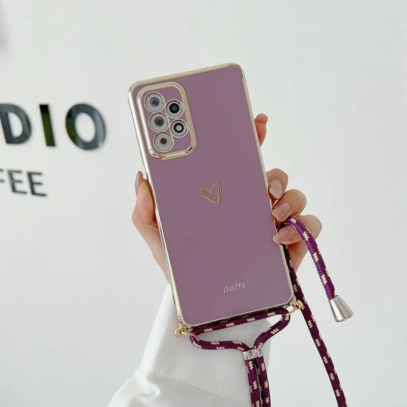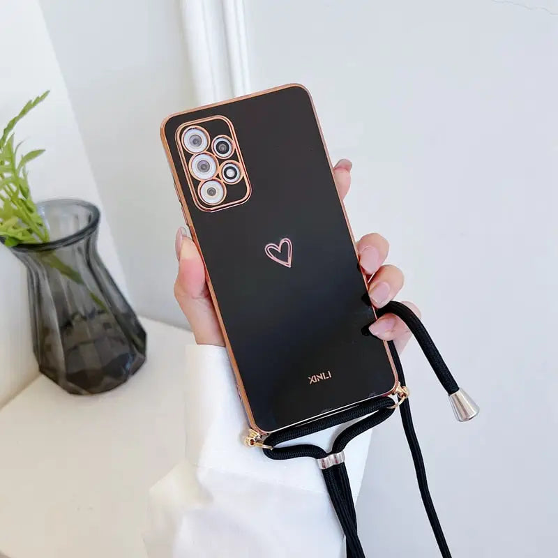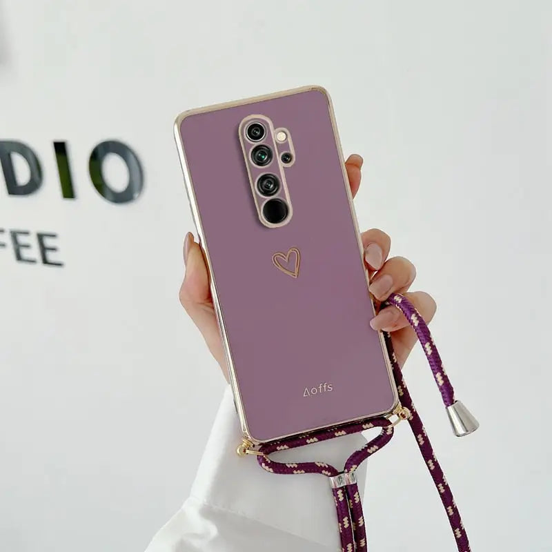 Étuis de téléphone plaqués coeur d'amour avec lanière pour Xiaomi Redmi Note 8 ACST Pro bandoulière