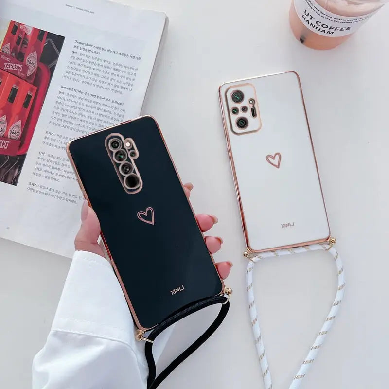 Présentation de notre coque de téléphone Love Heart avec lanière bandoulière, spécialement conçue pour Xiaomi Redmi Note 10 11 12 8 9 7 ACST X. Cette coque de téléphone élégante et pratique est parfaite pour ceux qui apprécient à la fois la mode et la commodité. notre coque de téléphone Love Heart garantit que votre appareil reste bien protégé contre les rayures, les chocs et l'usure quotidienne. Avec sa construction robuste, il offre une défense fiable sans compromettre le style. Ne vous souciez plus de perdre ou de faire tomber votre téléphone lors de vos déplacements ! La sangle réglable vous permet de porter votre téléphone confortablement sur votre corps, laissant vos mains libres pour d'autres tâches. Que vous fassiez des courses, que vous vous promeniez ou que vous assistiez à un concert, cette lanière bandoulière maintient votre Xiaomi Redmi Note en toute sécurité à portée de main. non seulement cette coque de téléphone Love Heart offre une fonctionnalité incroyable, mais elle rayonne également de charme avec son cœur conception en forme. Le motif cœur d'amour ajoute une touche d'élégance et d'unicité à votre Xiaomi Redmi Note, le faisant se démarquer de la foule. Montrez votre sens du style tout en protégeant votre appareil !undéfiniundéfiniNous croyons qu'il est important d'offrir une valeur exceptionnelle à nos clients, et c'est pourquoi notre coque de téléphone Love Heart est proposée à un prix fantastique. Nous voulons garantir que vous puissiez profiter d’une qualité irréprochable sans vous ruiner. Votre satisfaction est notre priorité et nous visons à fournir des produits qui dépassent vos attentes.undéfiniundéfiniEn tant que petite entreprise, votre soutien compte pour nous. En achetant notre coque de téléphone Love Heart avec lanière bandoulière, vous améliorez non seulement le style et la protection de votre téléphone, mais vous nous aidez également à continuer à faire ce que nous aimons. Alors faites-vous plaisir ou surprenez quelqu'un de spécial avec cette coque de téléphone tendance et découvrez la joie qu'elle apporte à votre vie quotidienne. Faites-nous confiance, vous ne serez pas déçu !