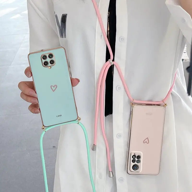Coque de téléphone en forme de cœur d'amour, avec lanière bandoulière, pour Xiaomi Redmi Note 10 11 12 8 9 7 ACSTX