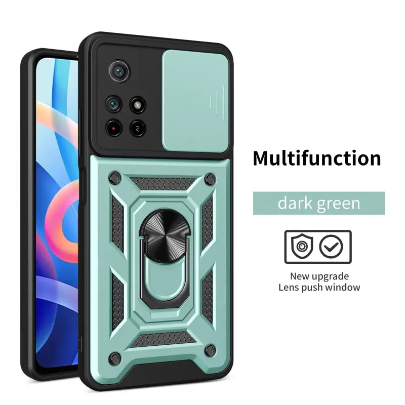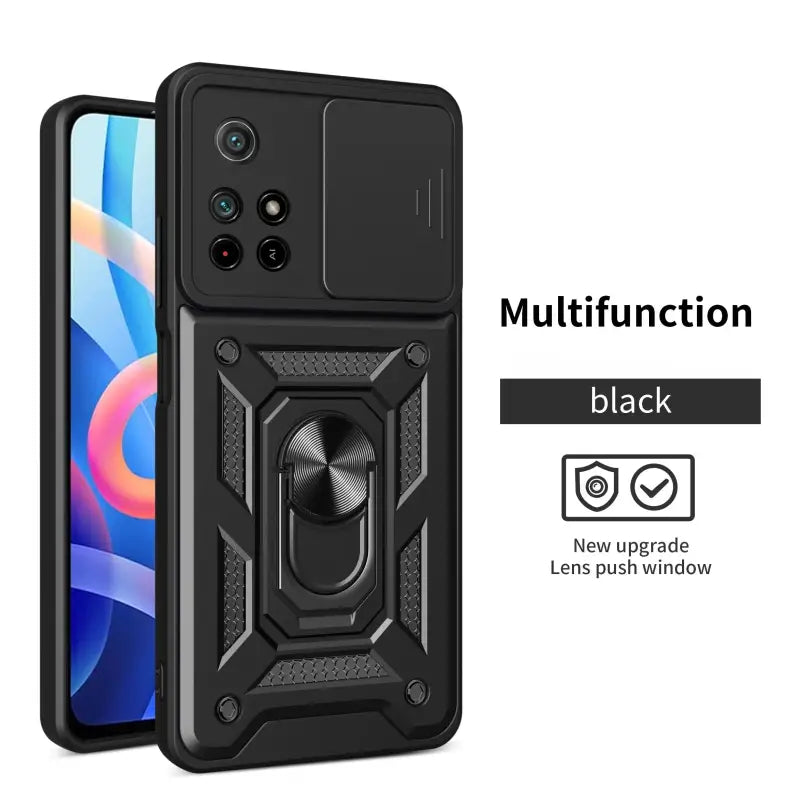 Coque de téléphone blindée antichoc avec support d'anneau magnétique et housse de caméra coulissante pour Xiaomi POCO
