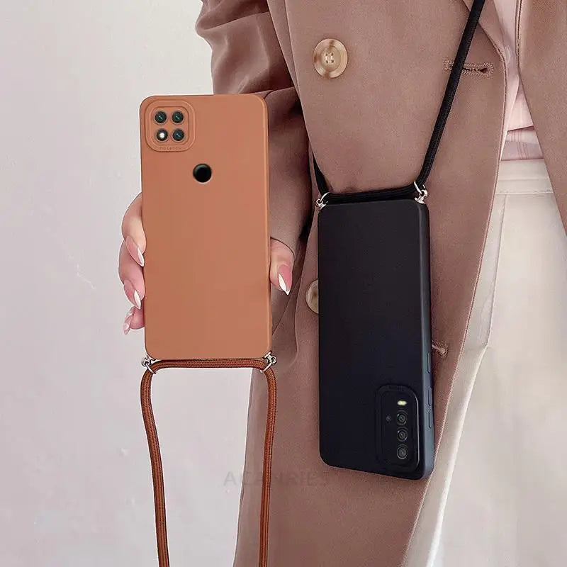 Coque de téléphone avec lanière à bandoulière, étui en Silicone mat pour Xiaomi Redmi 10 9 ACST Pro