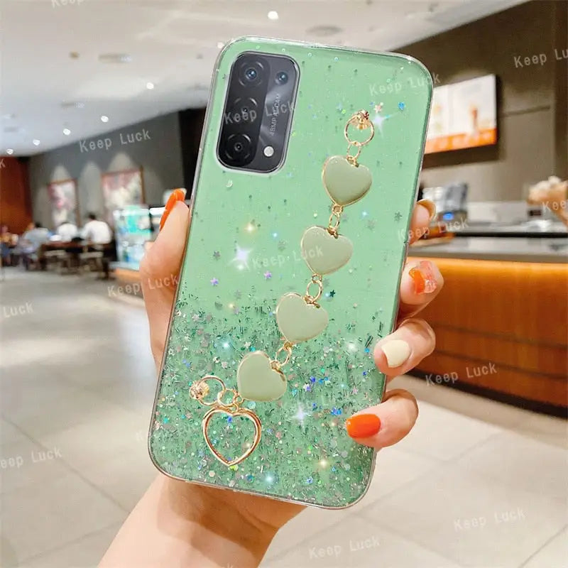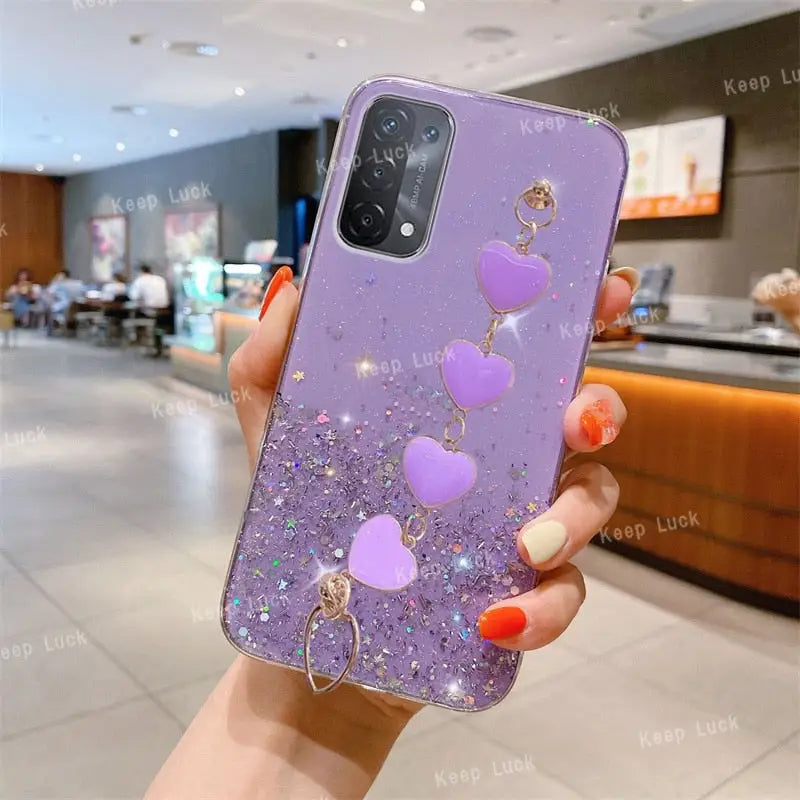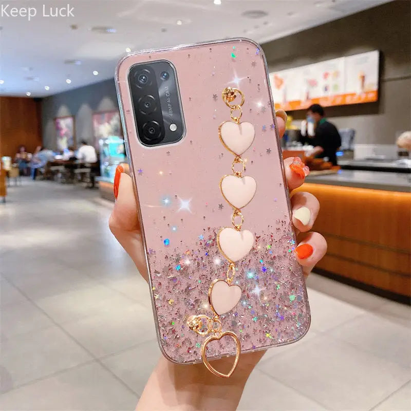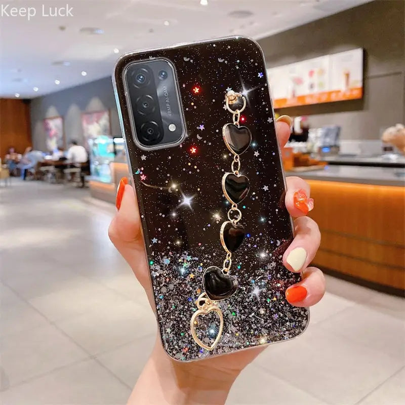 Coque de téléphone de luxe à paillettes, bracelet, cœur d'amour, pour OPPO A5 A9 A15 A15S A16 A16S A52 A53 A54 A72 A73