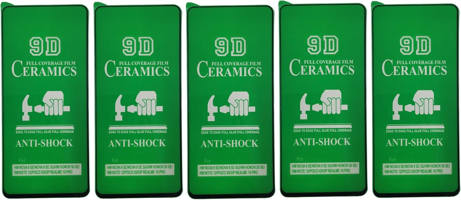 5 Pack of Ceramic Premium Flexible Screen Protectors for Redmi Note 12; POCO X5 5G. Full screen protection from common key or knife scratching & higher level (but not absolute) impact protection. Suitable for high wear everyday use.