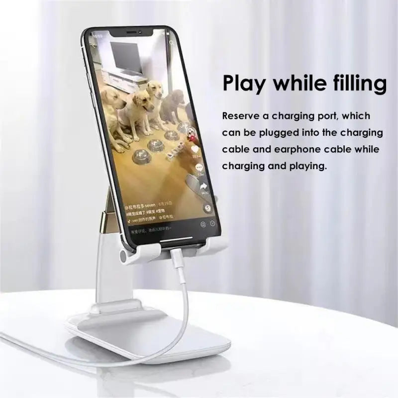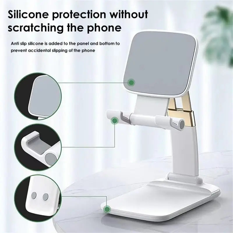 The holder is designed with non-slip pads on the base, providing a stable and secure platform for your device. This ensures that your phone or tablet stays in place even when you're typing, swiping, or tapping on the screen.